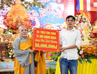 Chùa Tường Vân trao tặng “Nhà Chữ Thập Đỏ” cho bà Nguyễn Thị Hồng nhân dịp Phật đản và sinh nhật Bác