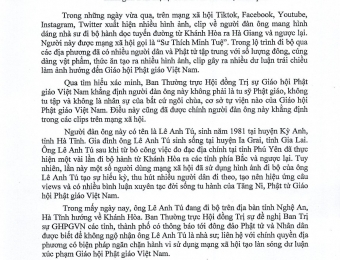 Trung ương GHPGVN thông báo người được gọi là “Sư Thích Minh Tuệ” không phải là tu sỹ Phật giáo