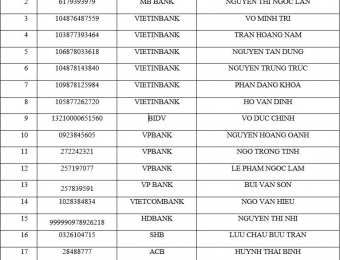 THÔNG BÁO CÁC TÀI KHOẢN NGÂN HÀNG LIÊN QUAN ĐẾN HÀNH VI LỪA ĐẢO TRÊN KHÔNG GIAN MẠNG